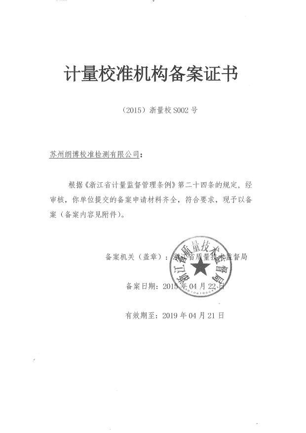 余姚朗博計(jì)量檢測(cè)有限公司是余姚計(jì)量檢測(cè)、余姚儀器檢測(cè)、余姚儀器校準(zhǔn)、余姚計(jì)量檢測(cè)、余姚儀器校正、余姚儀器計(jì)量校驗(yàn)的計(jì)量校準(zhǔn)檢測(cè)技術(shù)服務(wù)公司。余姚朗博計(jì)量檢測(cè)有限公司屬于朗搏校準(zhǔn)檢測(cè)集團(tuán)公司,集團(tuán)公司另外下轄蘇州朗博校準(zhǔn)檢測(cè)有限公司和北京朗博校準(zhǔn)檢測(cè)有限公司,另外在南京、揚(yáng)州、南通、廣州東莞、山東濰坊、安徽合肥、越南北寧等地設(shè)置辦事機(jī)構(gòu)。朗博校準(zhǔn)檢測(cè)集團(tuán)通過(guò)中國(guó)合格評(píng)定國(guó)家認(rèn)可委員會(huì)(CNAS)及國(guó)防科技工業(yè)實(shí)驗(yàn)室認(rèn)可委員會(huì)(DILAC)認(rèn)可與授權(quán),專(zhuān)業(yè)從事計(jì)量校準(zhǔn)、檢測(cè)(包含軍用設(shè)備檢測(cè))和維修服務(wù)的綜合實(shí)驗(yàn)室,可以開(kāi)展900多個(gè)項(xiàng)目的校準(zhǔn)和檢測(cè)技術(shù)服務(wù),所出具的校準(zhǔn)證書(shū)及檢測(cè)報(bào)告獲得國(guó)際實(shí)驗(yàn)室認(rèn)可合作組織多邊協(xié)議(ILAC-MRA)成員中48個(gè)國(guó)家和地區(qū)的認(rèn)可。校準(zhǔn)檢測(cè),實(shí)驗(yàn)室建有幾何量、熱工、力學(xué)、電磁、無(wú)線(xiàn)電、時(shí)間頻率、振動(dòng)、聲學(xué)、光學(xué)、理化等專(zhuān)業(yè)校準(zhǔn)實(shí)驗(yàn)室。實(shí)驗(yàn)室嚴(yán)格按照國(guó)家相關(guān)檢定規(guī)程、校準(zhǔn)規(guī)范、國(guó)家標(biāo)準(zhǔn)或儀器說(shuō)明書(shū)技術(shù)指標(biāo)的要求等進(jìn)行全面的校準(zhǔn)檢測(cè);實(shí)驗(yàn)室的校準(zhǔn)檢測(cè)工作完全滿(mǎn)足ISO/IEC17025和ISO9000的要求,實(shí)驗(yàn)室所出具的第三方公正的校準(zhǔn)證書(shū)及檢測(cè)報(bào)告獲得國(guó)際實(shí)驗(yàn)室認(rèn)可合作組織多邊協(xié)議(ILAC-MRA)成員中48個(gè)國(guó)家和地區(qū)的認(rèn)可。